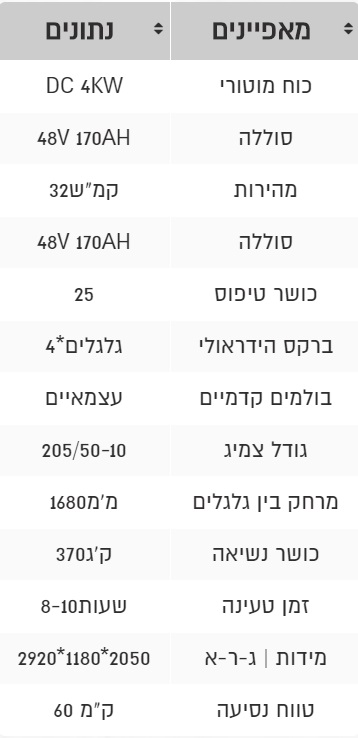 רכב שירות תפעולי יפיפה, שילדת אלומיניום קלה וחזקה, מנוע גרמני, מצברי טרוג'ן אמריקאים, ספידומטר דיגיטלי, פנסי לד, וגימור מושלם !