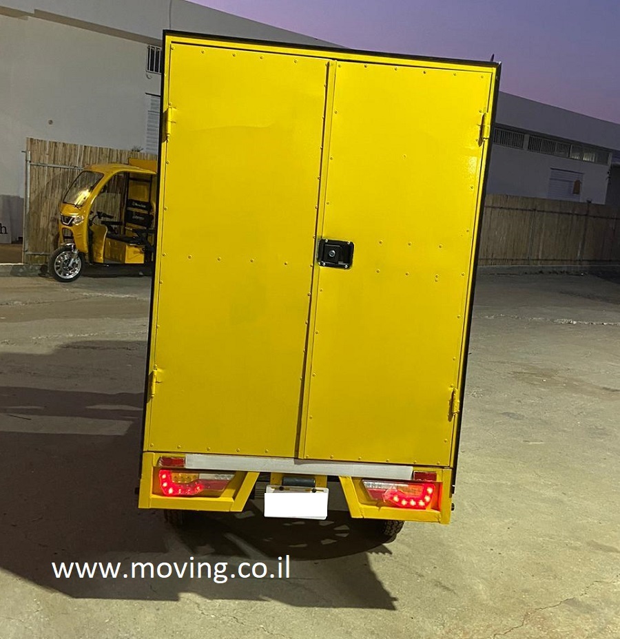 מוטו לוקס 9800 קרגו, סגירת ארגז אחורי בטוקטוק צהוב עם קבינה, צילום צד