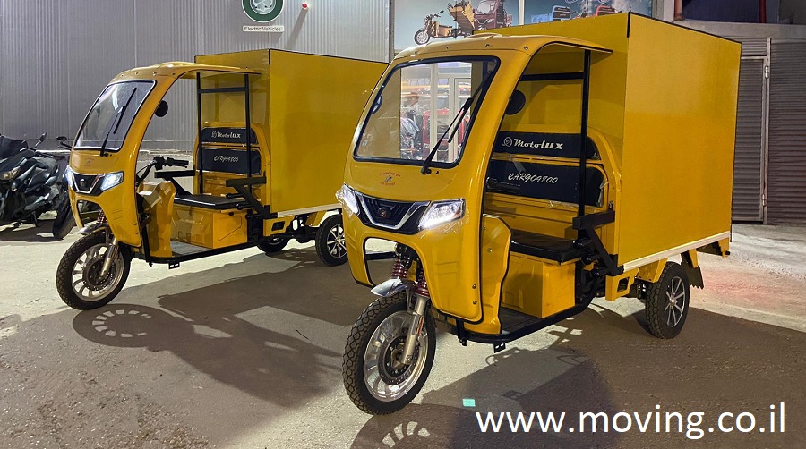 ארגז סגור עם דפנות פח מגולוון לטוקטוק עם קבינה על עגלה, צילום מהצד