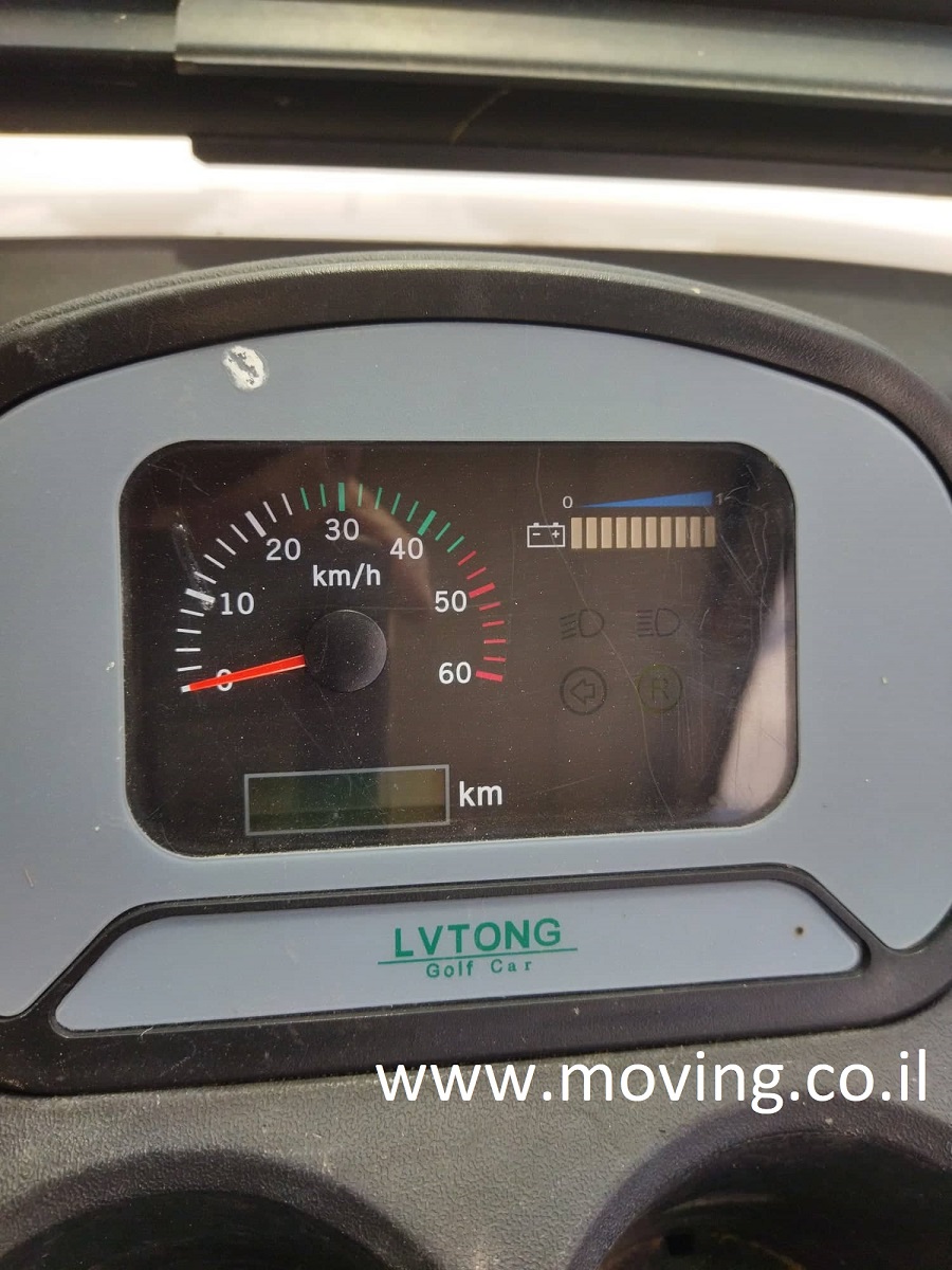 אי-קאר, E-car, מד מהירות אנלוגי ברור, כולל נורות חיווי תאורה, איתות, מצב מנוע, קילומטראז'